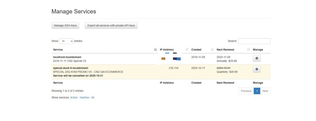 然后回到网站管理面板即可看到你购买的服务器,接下来进入技术部署环节。