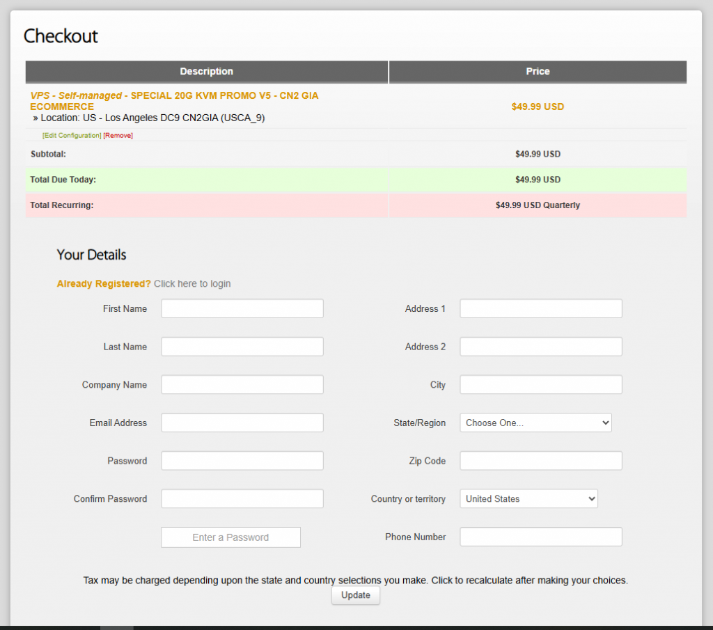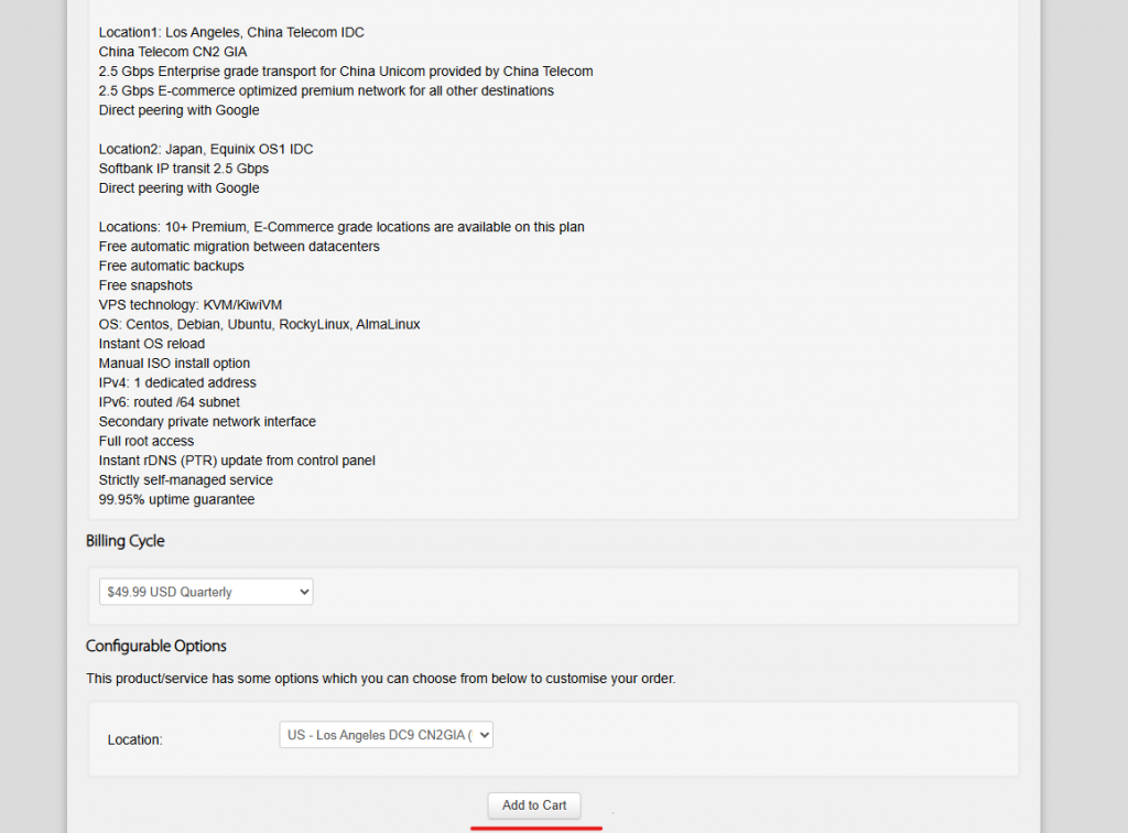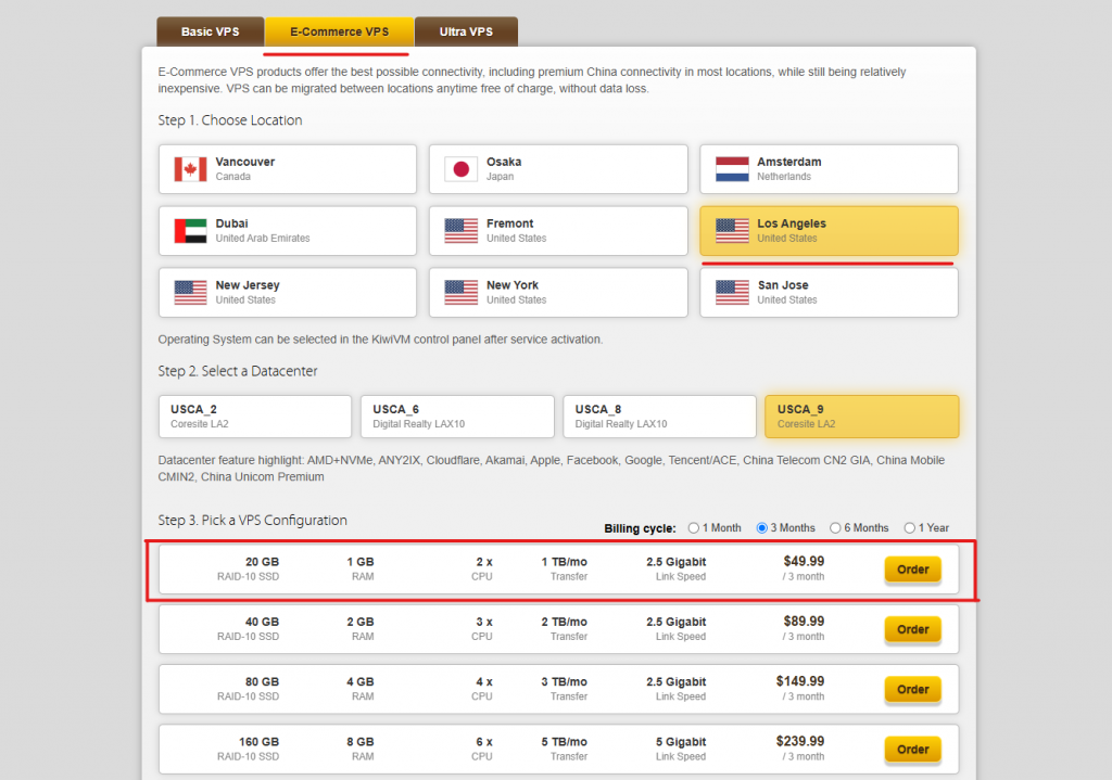 - 下滑至底部,点击 Order Los Angeles CN2 GIA。
