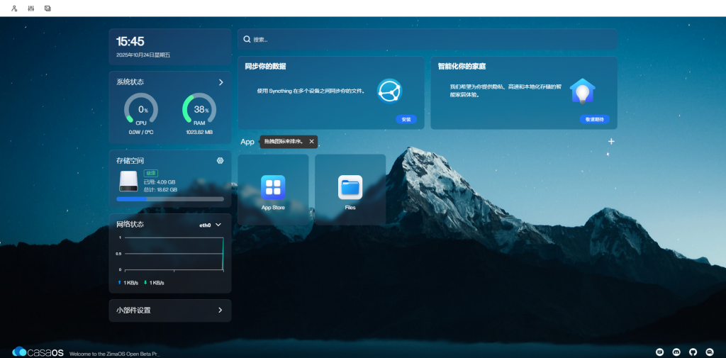 一句话:CasaOS = 好看的个人云面板 + 一键装应用的“云管家”,让自建服务像装手机 App 一样简单。